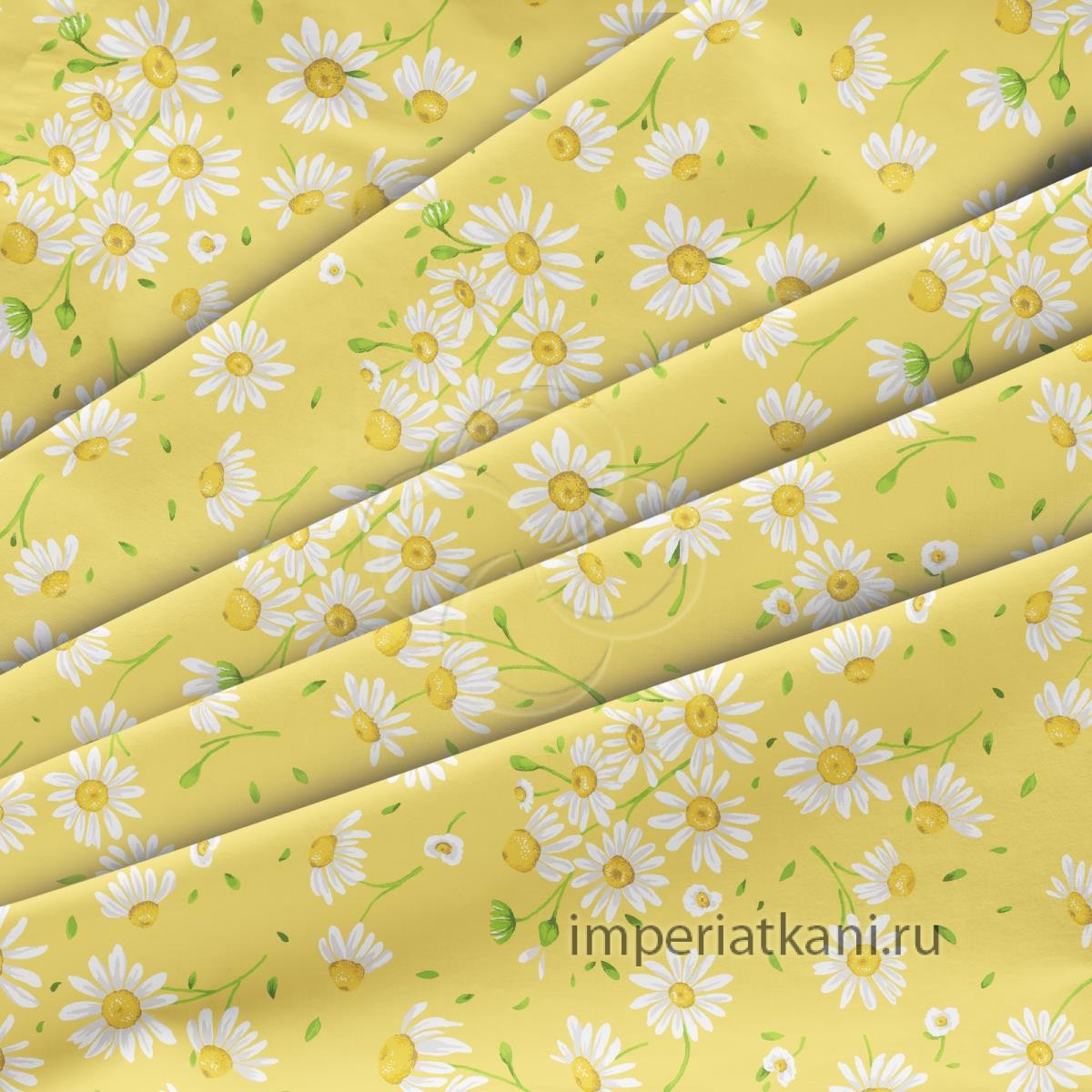 Детская перкаль «Миолора» шириной 150 см с изображением на ткани — ромашки; цветовая гамма: голубая, зеленая. Опт от 30 000 руб., продажа рулонами.